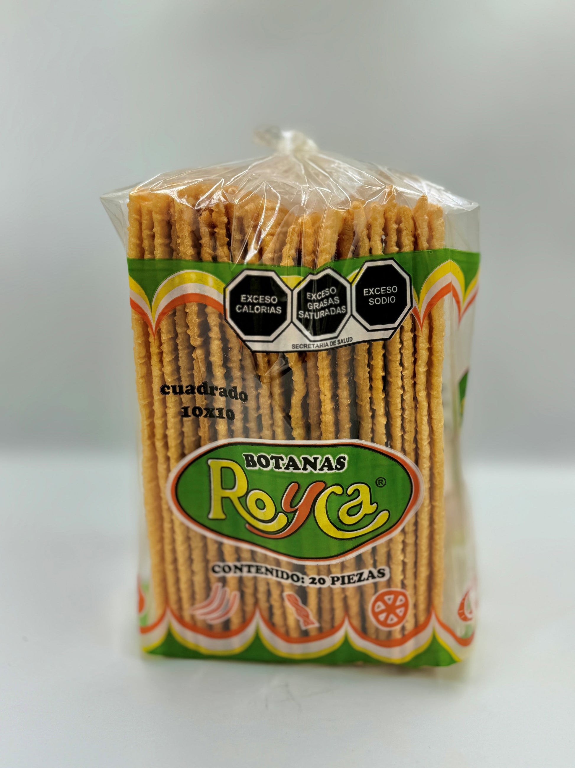 Bolsa de 15x25cm con 20pz. de cuadro hecho de pasta de harina de trigo, contiene 580grs de producto