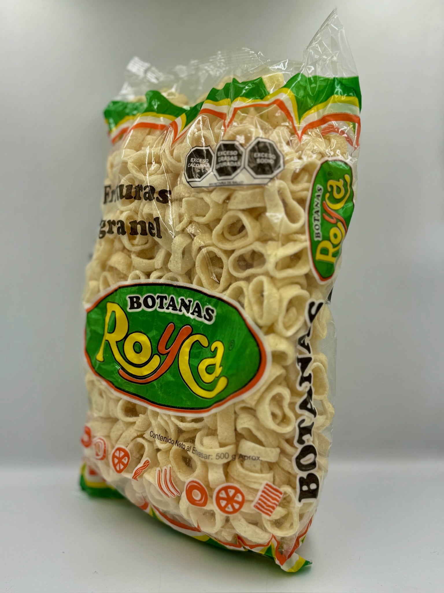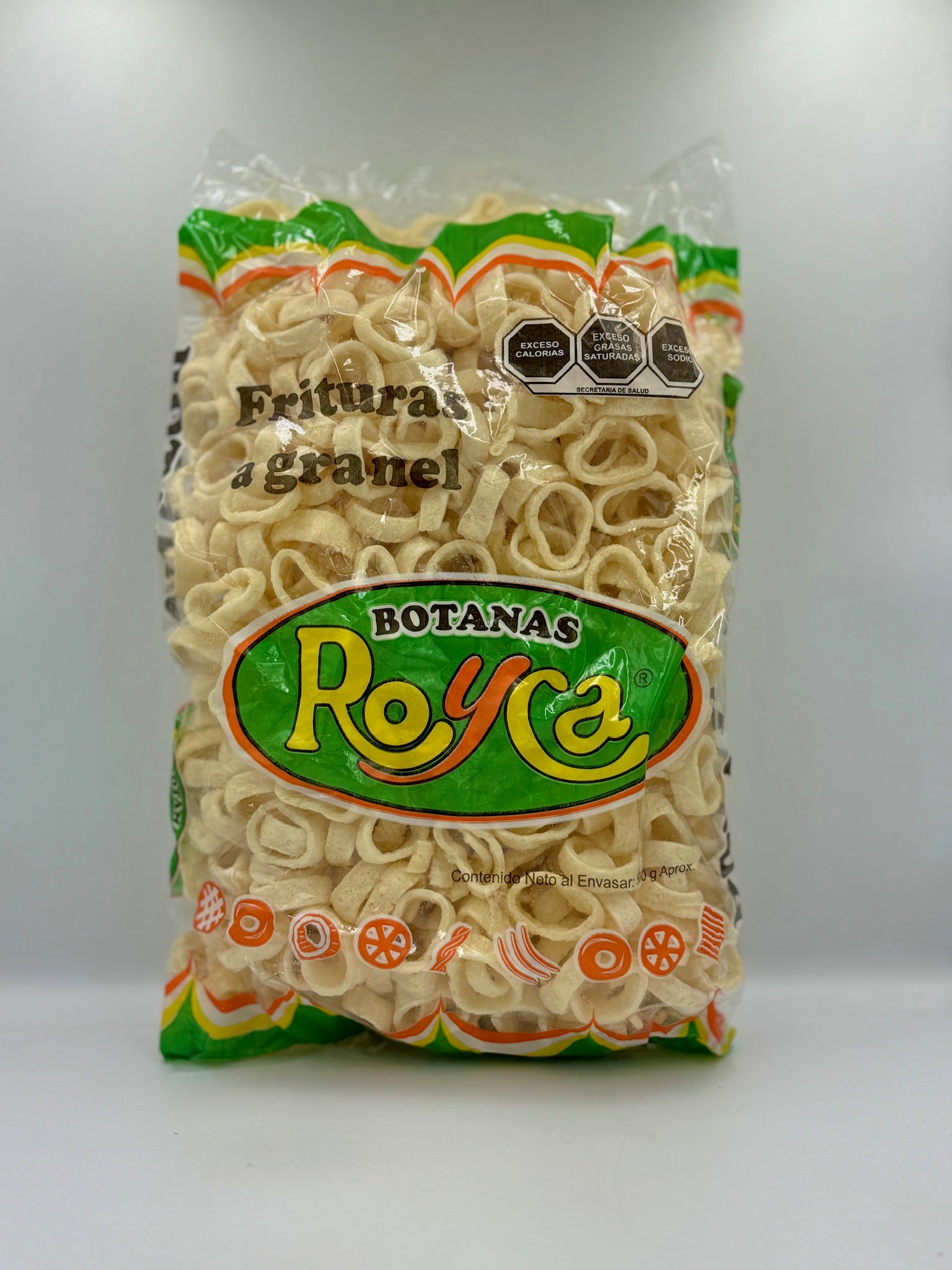 Fritura en forma de dona con un sabor ligero a cebolla hecho de pasta de harina de trigo, contiene 650grs de producto