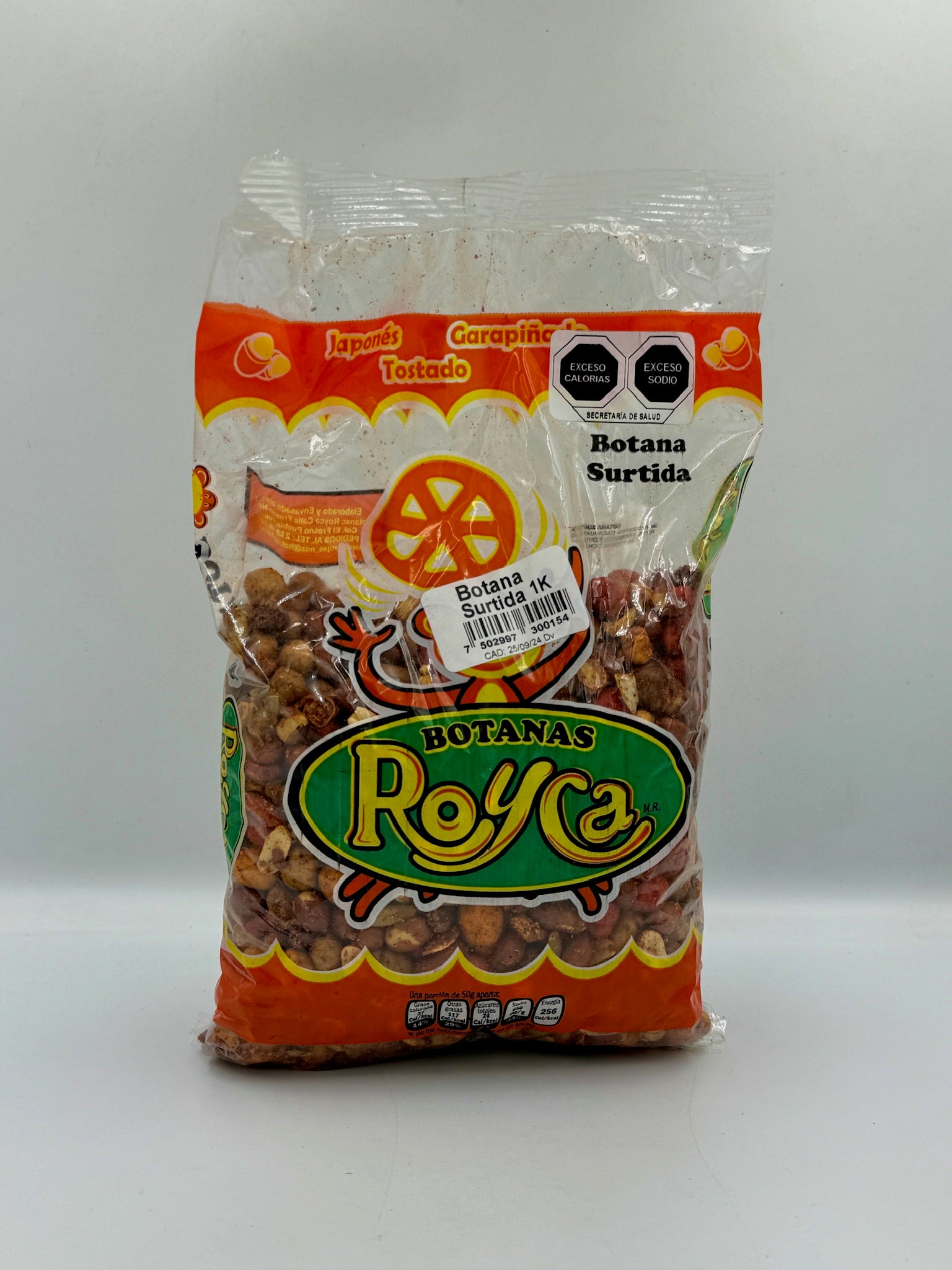 Mix de todas las botanas, incluye pepita, japonés, haba, garbanzo, crujiente con chile, salado, y enchilado, contiene 1kg de producto