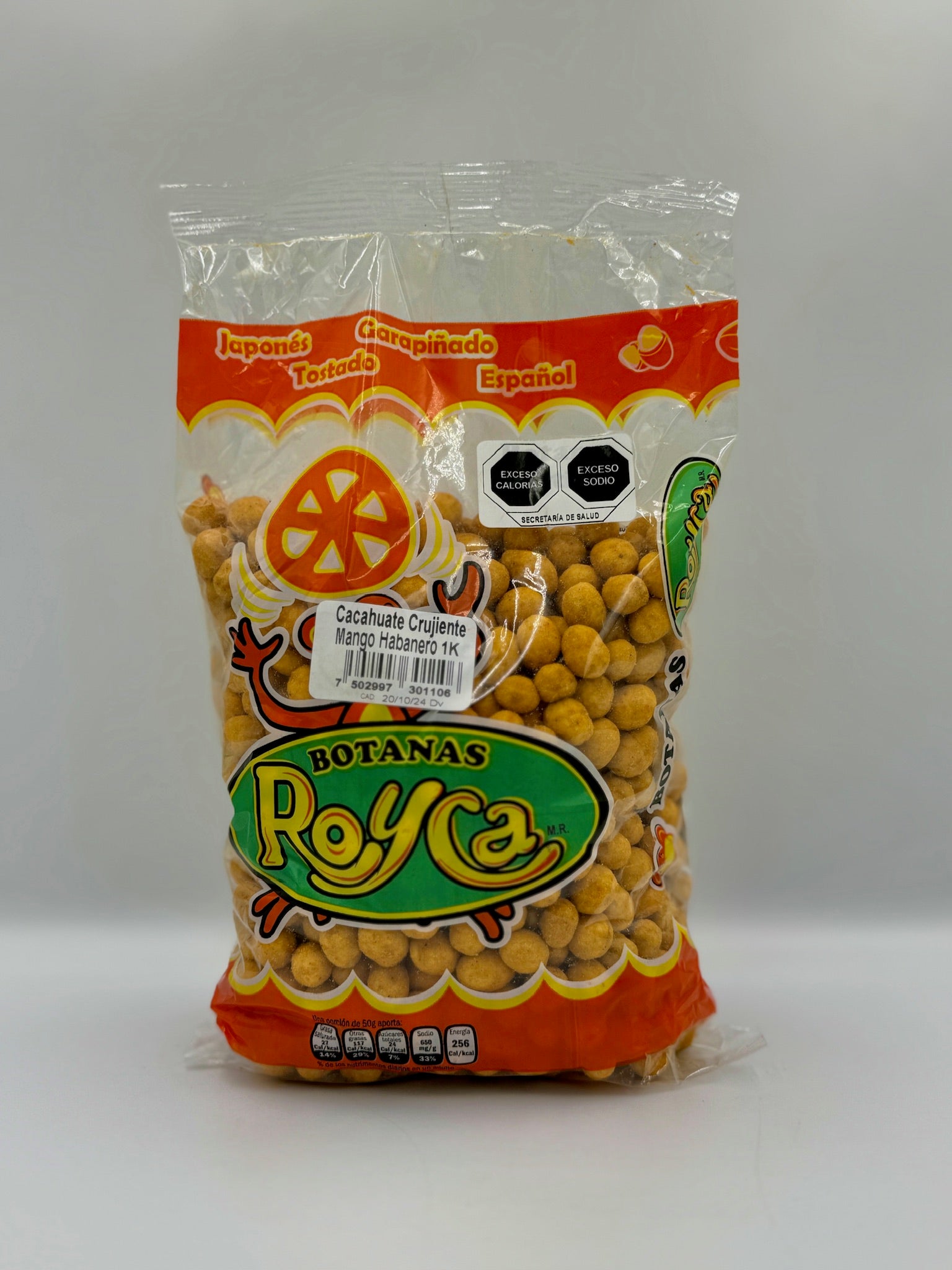 Cacahuate frito con una cubierta crujiente de harina espolvoreado con chile mango habanero, contiene 1kg de producto